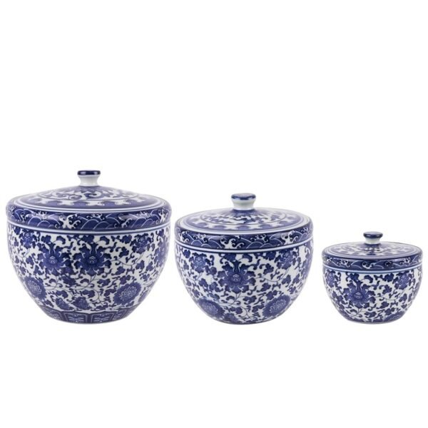 Blue and White Porcelain Ceramic Tea Jar Kitchen Pot