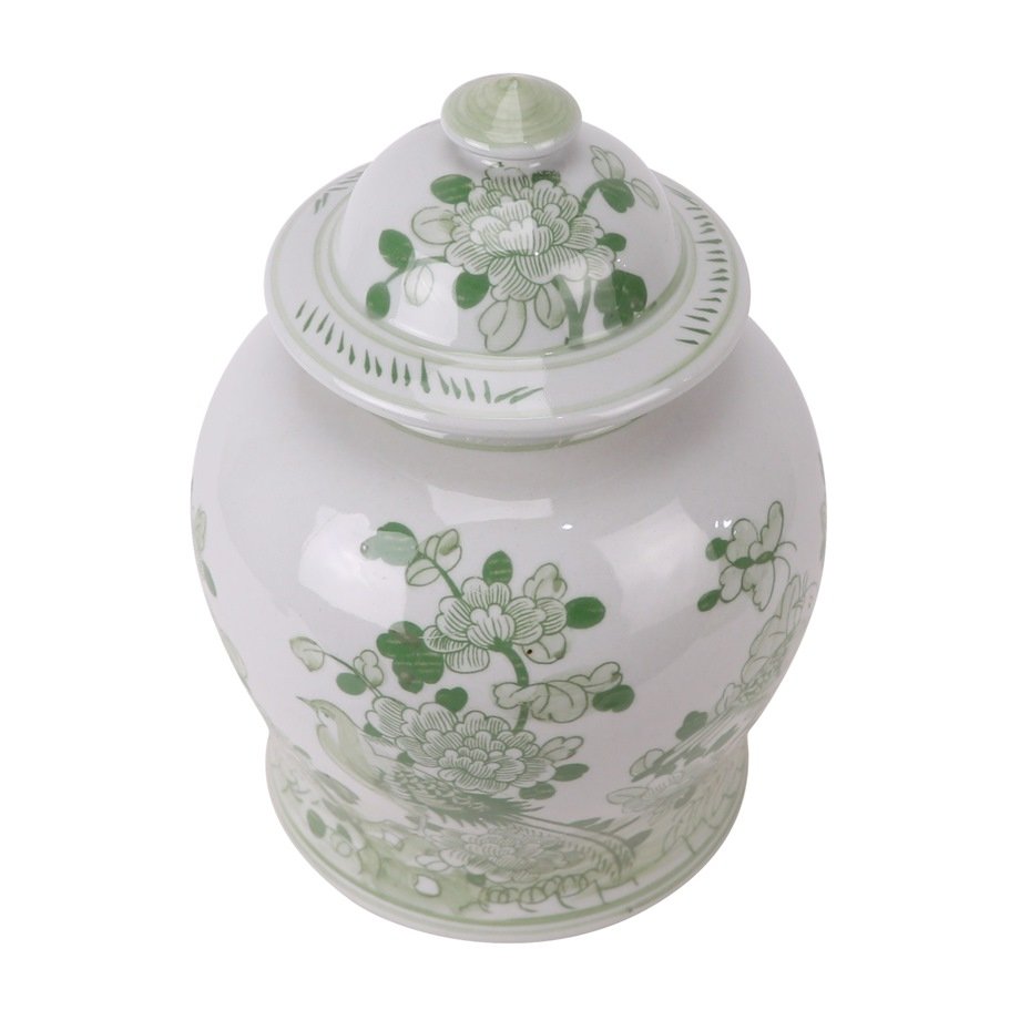 Chinoiserie Green Floral and Bird Ceramic Jar