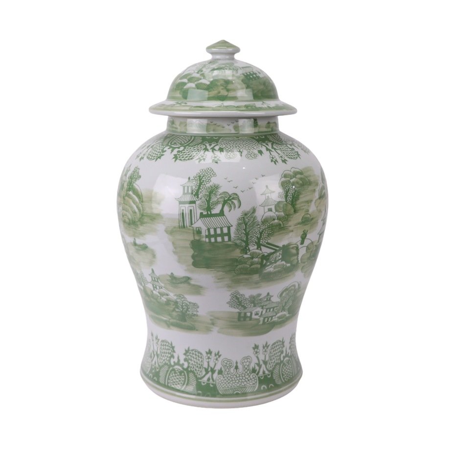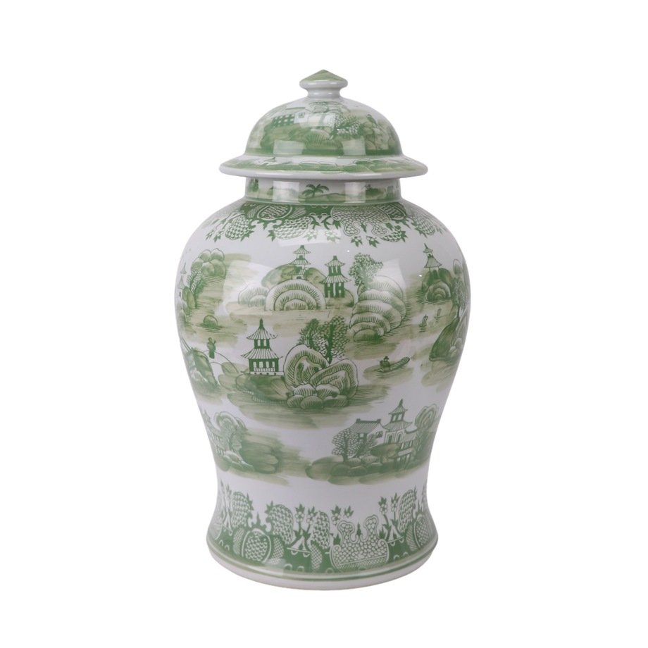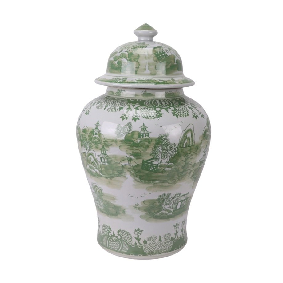 Green Landscape Chinoiserie Oriental Porcelain Jar