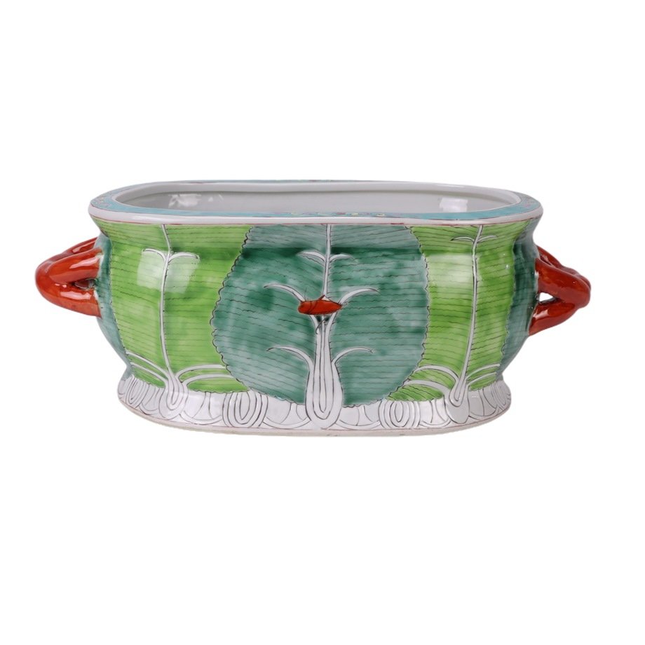 Hand-Painted Bok Choy Motif Oval Foot Bath Porcelain Planter
