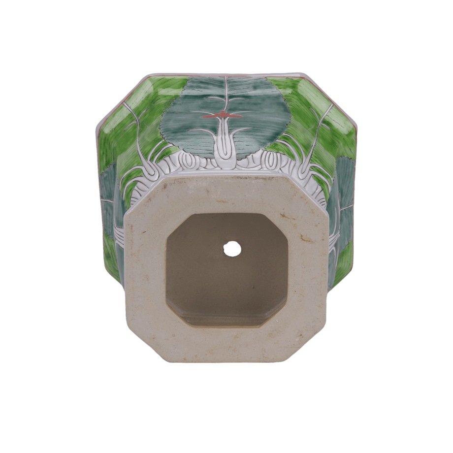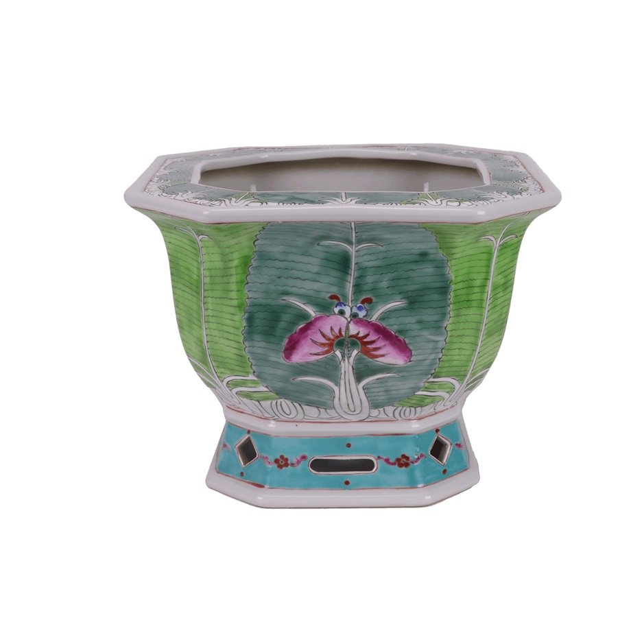 Famille Rose Green Cabbage and Butterfly Pattern Octagonal Flower Pot