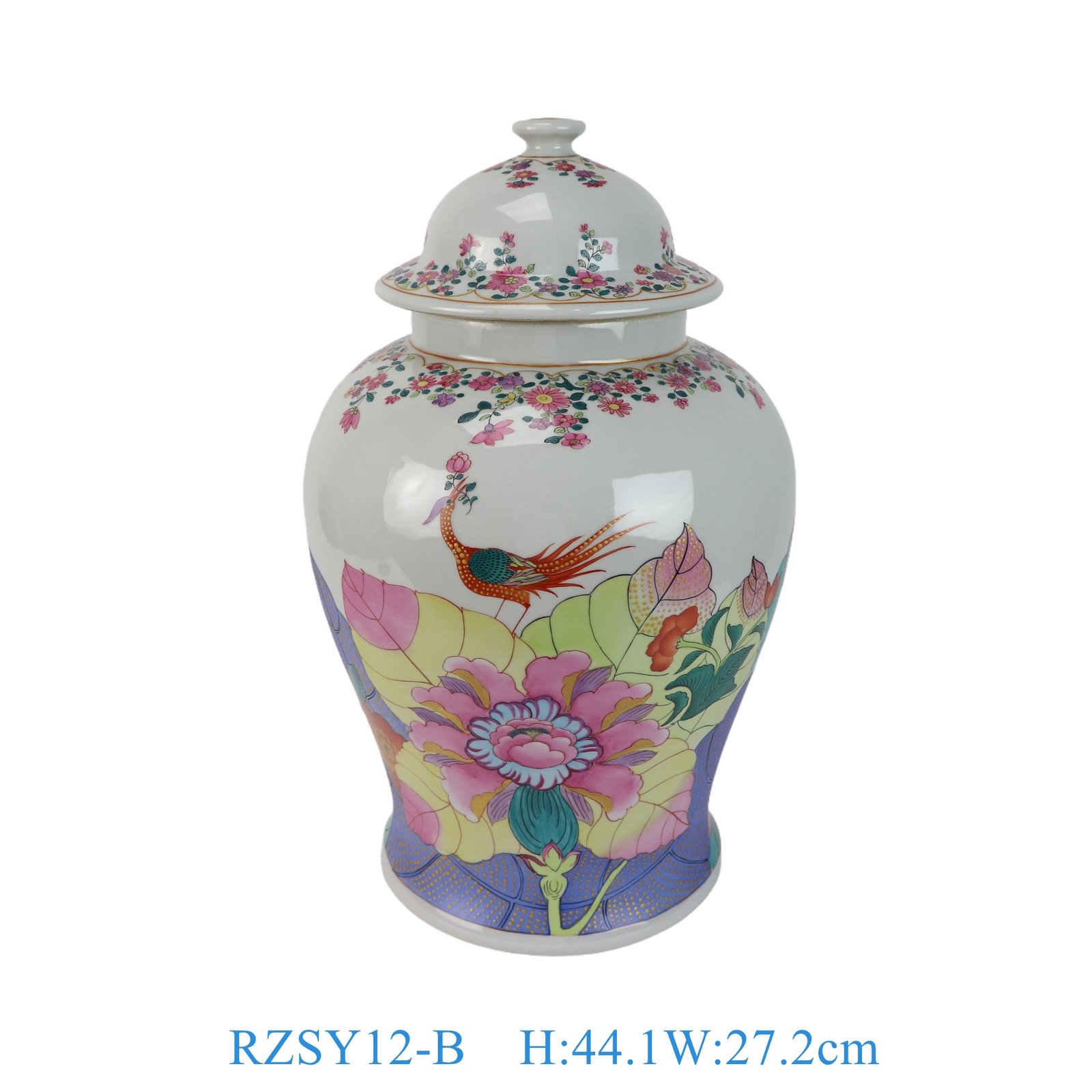 Famille Rose Tobacco Leaf, Phoenix, Flower and Bird Pattern General Jar